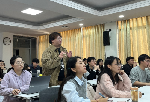 交流提问环节,与会师生围绕实证难点、研究计划安排、跨学科适应策略等实际问题展开热烈讨。佟思亮结合其自身学术经历以及在国际期刊发表的经验,逐一回应。他建议同学们在研究方向选择上注重延续性与创新性的结合,并鼓励大家在跨学科合作中主动构建知识桥梁、保持方法论上的开放与融合。现场互动频繁、思维碰撞激烈。