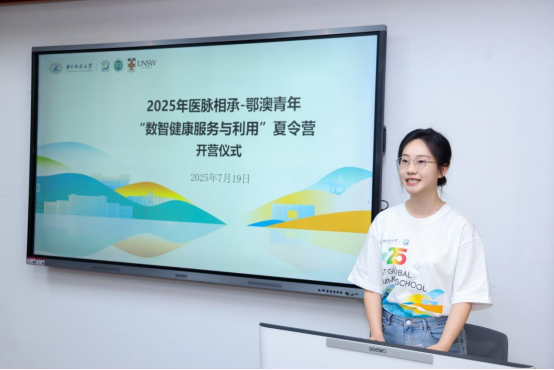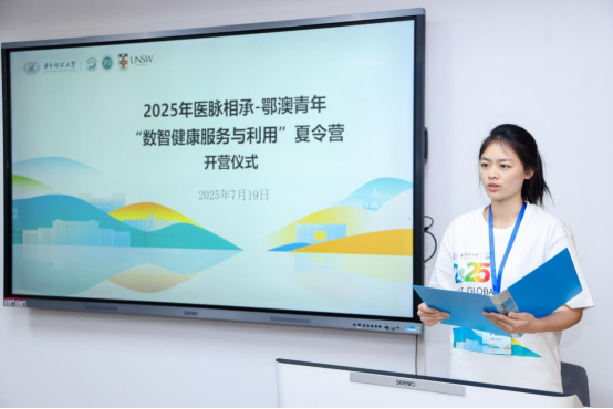 澳门大学学生营员代表、研究生丁倩雯在发言中表示,本次夏令营不仅是学术交流的桥梁,更是响应国家“健康中国”战略的生动实践。她结合澳门在中医药现代化与国际化的优势,期待与华科大学子共同探索数字健康前沿。