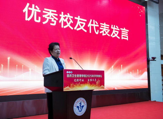 校友代表肖燕深情回顾了在同济的求学岁月与投身医疗卫生事业的奋斗历程,并以裘法祖院士的三句名言寄语同学们:做人,要做一名高尚而清廉的人;做事,要做能推动社会进步的事情;做学问,要在勇于探索中创新知识,敢于突破与创新。她希望新一代医管人能跑好这场精神的接力赛,将个人理想融入健康中国建设的伟大事业。