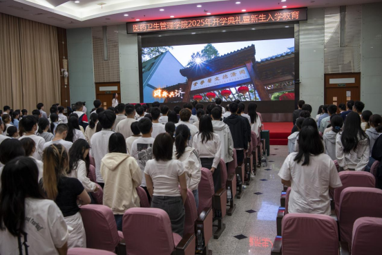 典礼最后,全体师生起立齐唱《华中科技大学校歌》。激昂旋律中承载华科大“明德、厚学、求是、创新”精神,既凝聚医管师生集体认同感,更将守护健康的使命植于心间,以歌声启航新程,激励大家向助力健康中国建设勇毅前行。