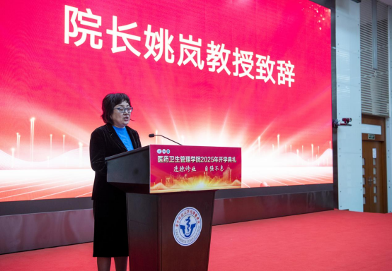 院长姚岚教授在致辞中代表学院对2025级新生表示热烈欢迎。希望同学们要“明德立心”,涵养“健康为民”的情怀;要“求是笃行”,锤炼“精益求精”的本领;要“创新致远”,保持“敢为人先”的勇气。期待同学们学有所成、思有所悟、行有所进,在健康中国建设的伟大征程中,书写精彩篇章。